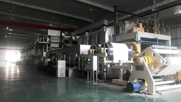 The coating machine is composed of roll coater, curtain coater, drying part with heat recovery function (natural gas heating), and conditioning part, winding/unwinding, etc. The coating crossrange metering is more uniform than the traditional method, and operation is stable. To pre-production trial 35g, 50g, 55g and 120g digital sublimation paper, the quality of production is good, high rate of transfer and printing color is exquisite, has been fully affirmed by the user.